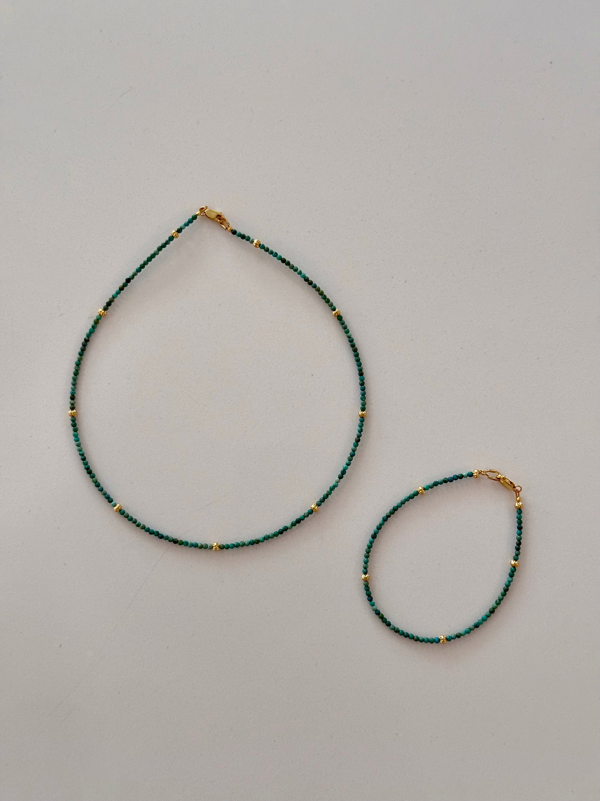 Elevate your everyday elegance with this refined choker necklace, crafted from authentic turquoise beads in a delicate 2mm size. Finished with lustrous gold-plated accents and a secure clasp, this 15-inch piece strikes the perfect balance between understated luxury and timeless appeal. A versatile addition to any discerning jewelry collection.