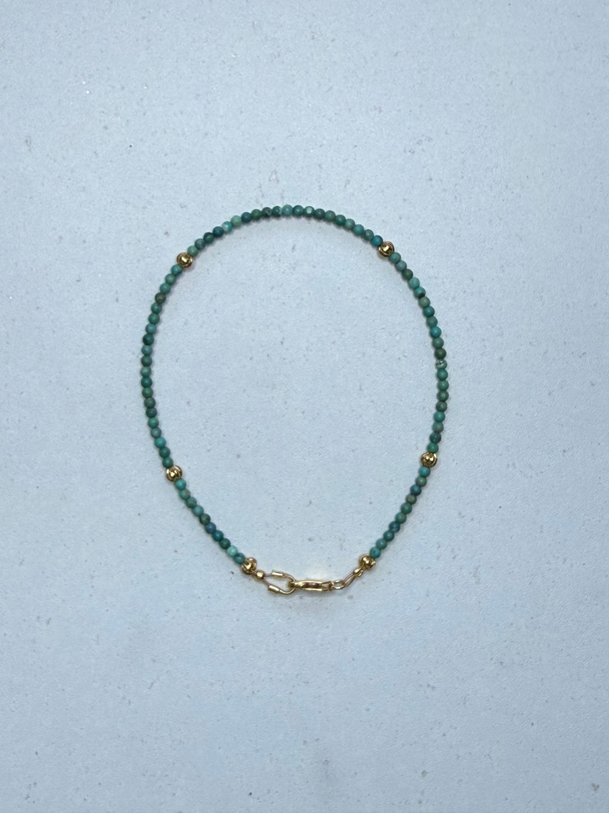 Crafted with refined elegance, this delicate bracelet features genuine turquoise stones paired with lustrous gold-plated accents and secure clasp. The 7.5-inch design suits larger wrists with timeless grace. A versatile piece that transcends seasons and occasions, it becomes an essential addition to any jewelry collection.